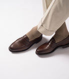 Penny loafer style Imperial, a true classic that every gentleman should have in his shoedrobe. Made on our loafer last shape called College/F. A soft almond toe shape last which suits both dressed and casual attire. This version features our slim Shadow Rubber Sole.