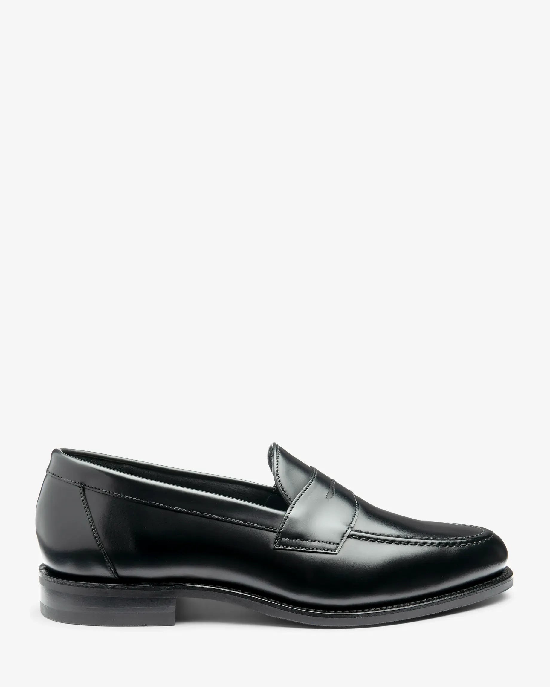 Penny loafers, a true classic that every gentleman should have in his shoedrobe. This style comes in a more formal Black Polished Leather. Made on our new loafer last shape called College/F. A soft almond toe shape last which suits both dressed and casual attire.